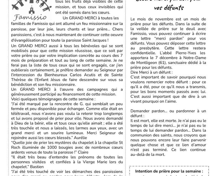 familles de Famissio qui ont allumé un feu missionnaire sur la paroisse, par leur joie, leurs chants et leur prière... Chers paroissiens, c’est à nous maintenant de continuer cette oeuvre d'évangélisation pour toute la paroisse Saint Jacques !